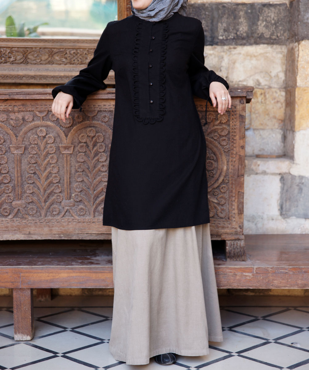 Veste zippée mi longue évasée (Vetement ample pour femme voilée) - Couleur noir - REF. 33172 (26.00 €)