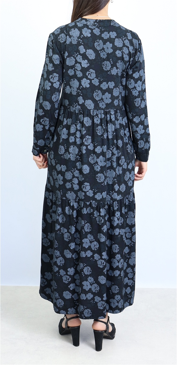 Choisissez cette longue robe noire avec motifs fleurs gris et votre corps sera conquis !