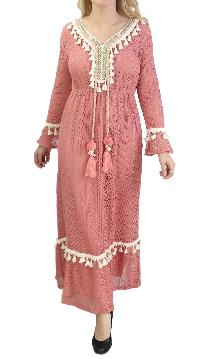 Robe de soirée en dentelles avec pompons - Couleur vieux rose Vetement & Accessoire