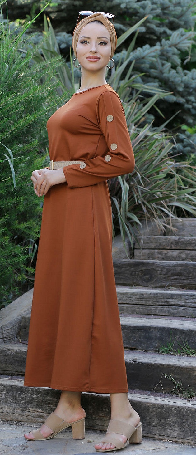 Robe de ville longue decoration boutons pour femme - Couleur rouille