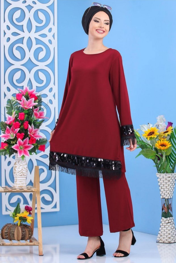 Ensemble femme deux pièces tunique + pantalon de couleur bordeaux Vetement & Accessoire