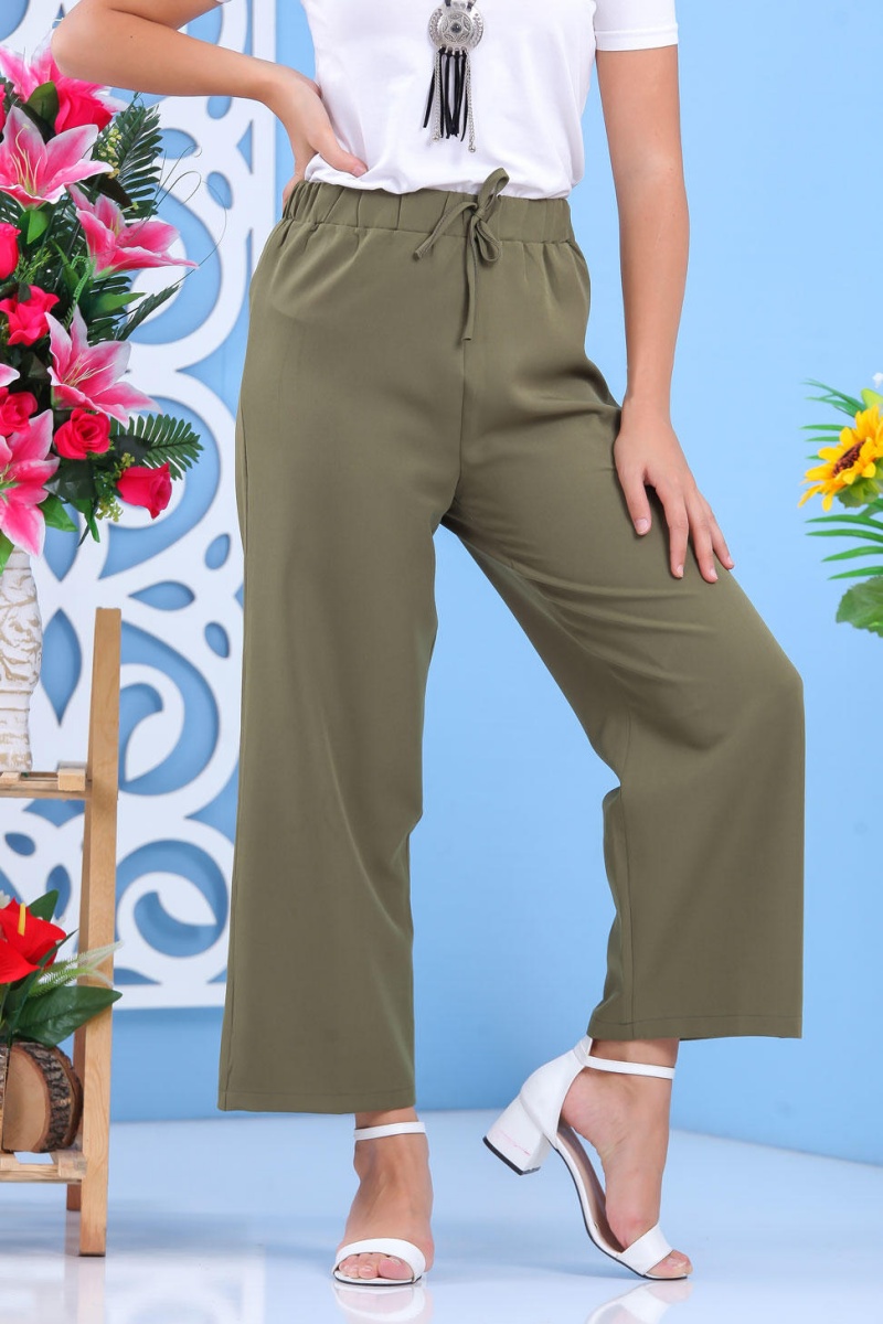 Pantalon large (grandes tailles) pour femme - Couleur kaki Vetement & Accessoire