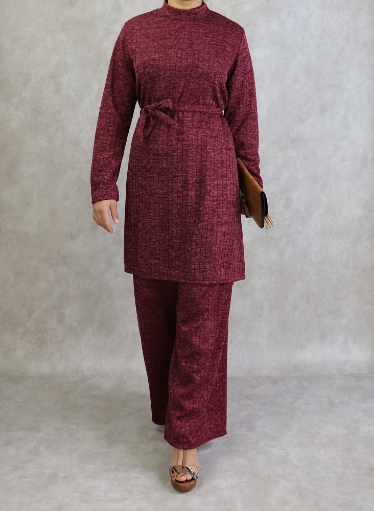 Ensemble tunique et pantalon chiné de couleur prune Vetement & Accessoire