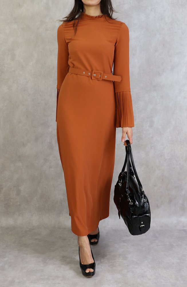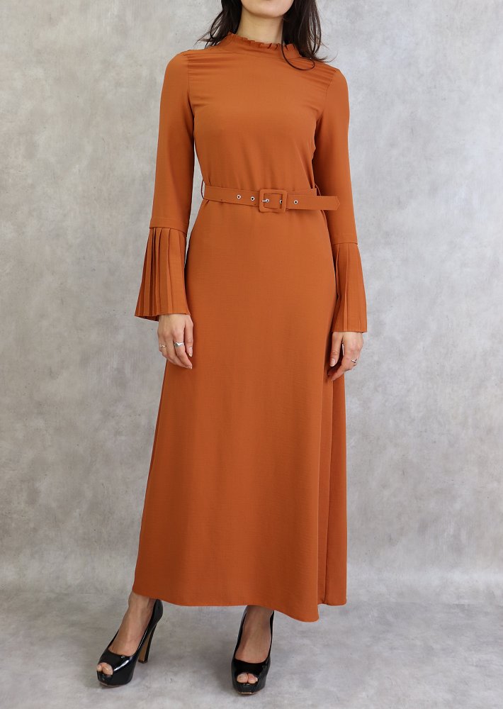 Robe classique et élégante manches plissées - Couleur brique Vetement & Accessoire