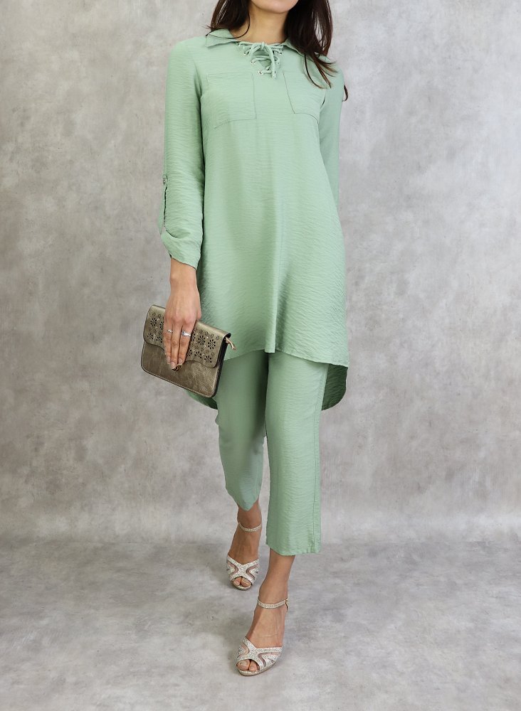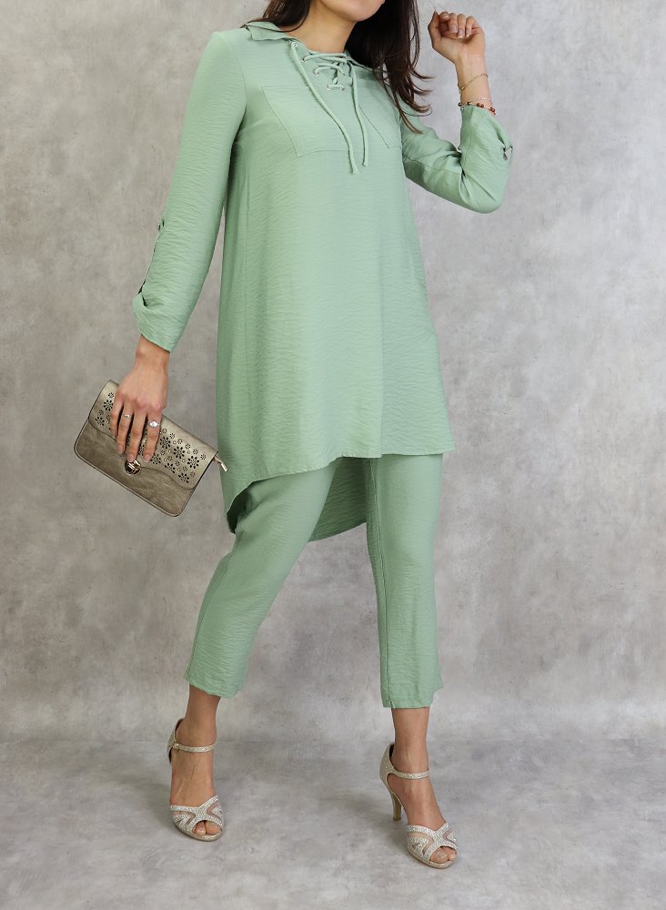 Ensemble deux pièces tunique et pantalon de couleur Vert amande Vetement & Accessoire