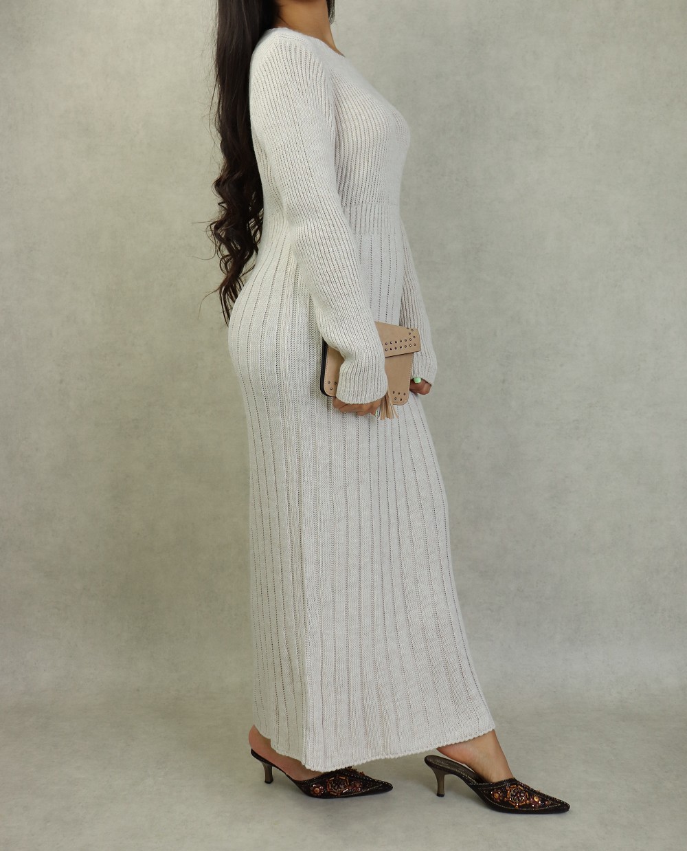 Robe en grosse maille pour femme (Saison Automne Hiver) - Couleur Blanc casse