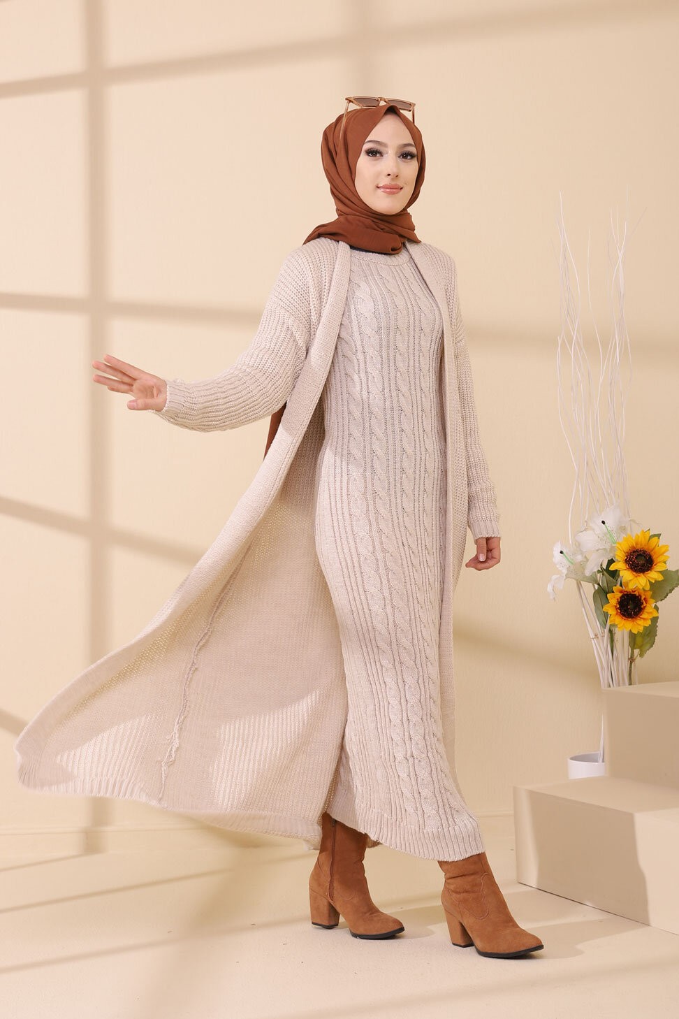 Ensemble deux pièces : Robe et cardigan pour femme - Couleur crème Vetement & Accessoire