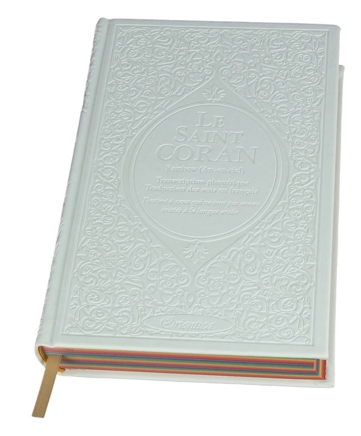 Le Saint Coran Rainbow (Arc-en-ciel) - Français-Arabe avec transcription Phonétique - Blanc - Edition de luxe (Couverture Cuir Blanche) - REF. 35933 (29.00 €)
