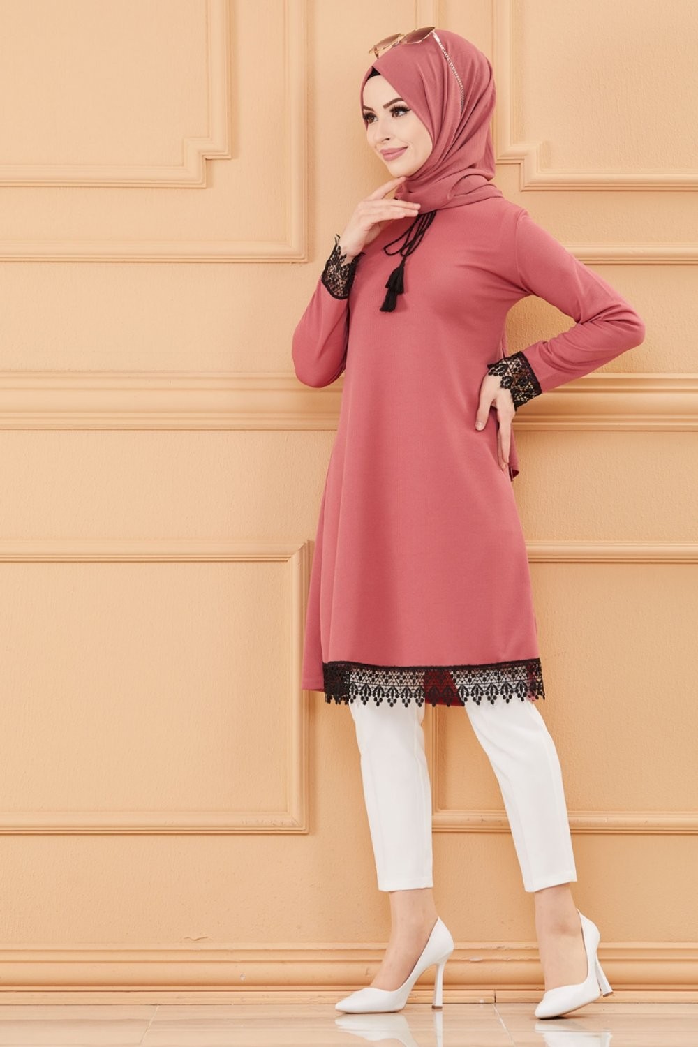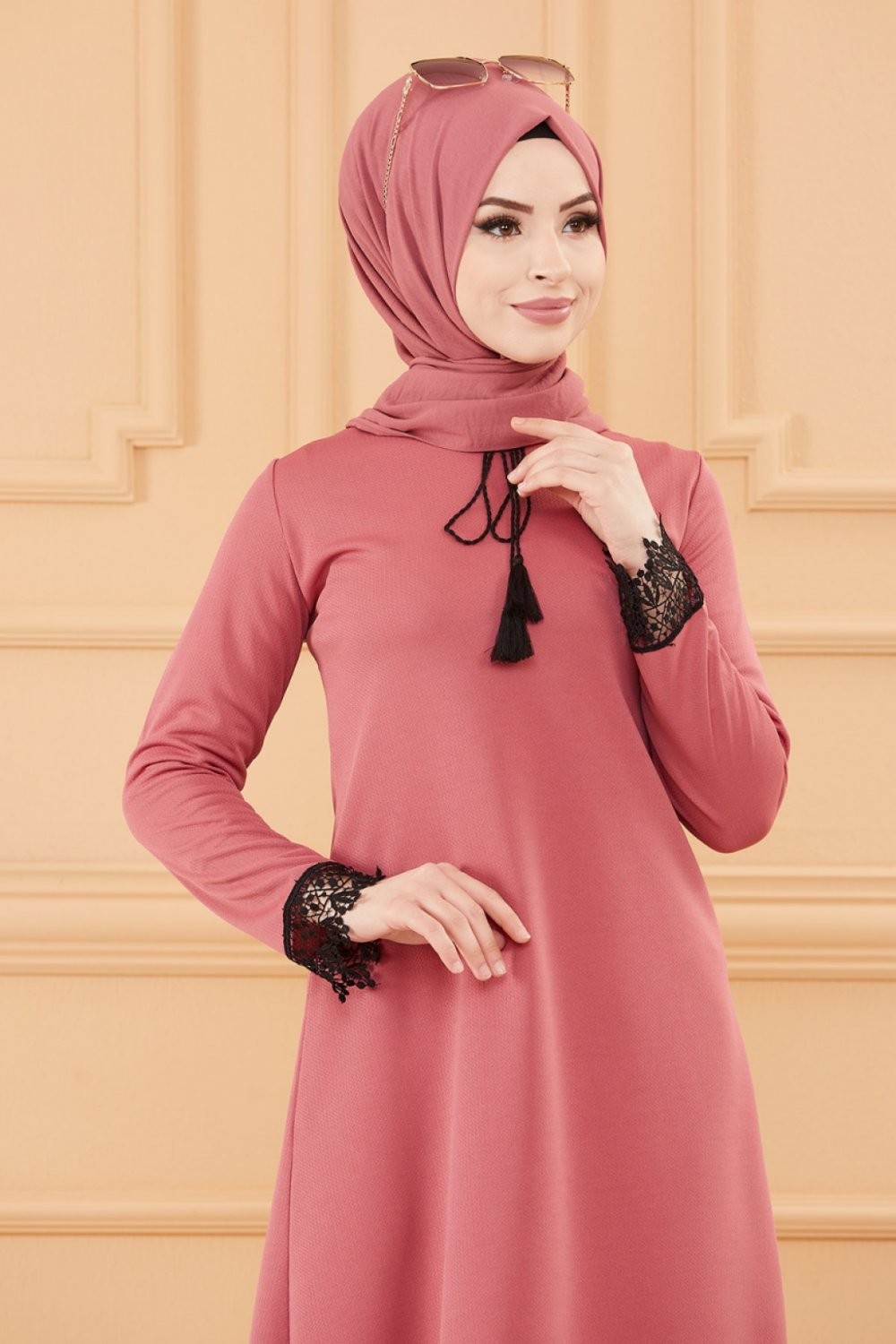Tunique habillée avec dentelle (Tenue femme pour hijab) - Couleur rose Vetement & Accessoire