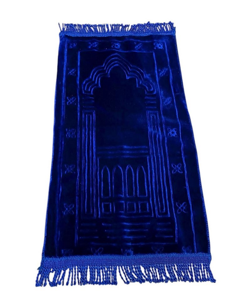 Tapis en velours très doux pour bébés et petits enfants musulmans de moins de 5 ans. Avec motifs discrets pour indiquer la direction. Dimensions du tapis 35 x 65 cm.