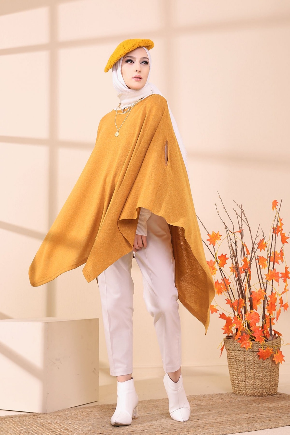 Poncho pour femme (Cape pour hijab) - Couleur moutarde Vetement & Accessoire