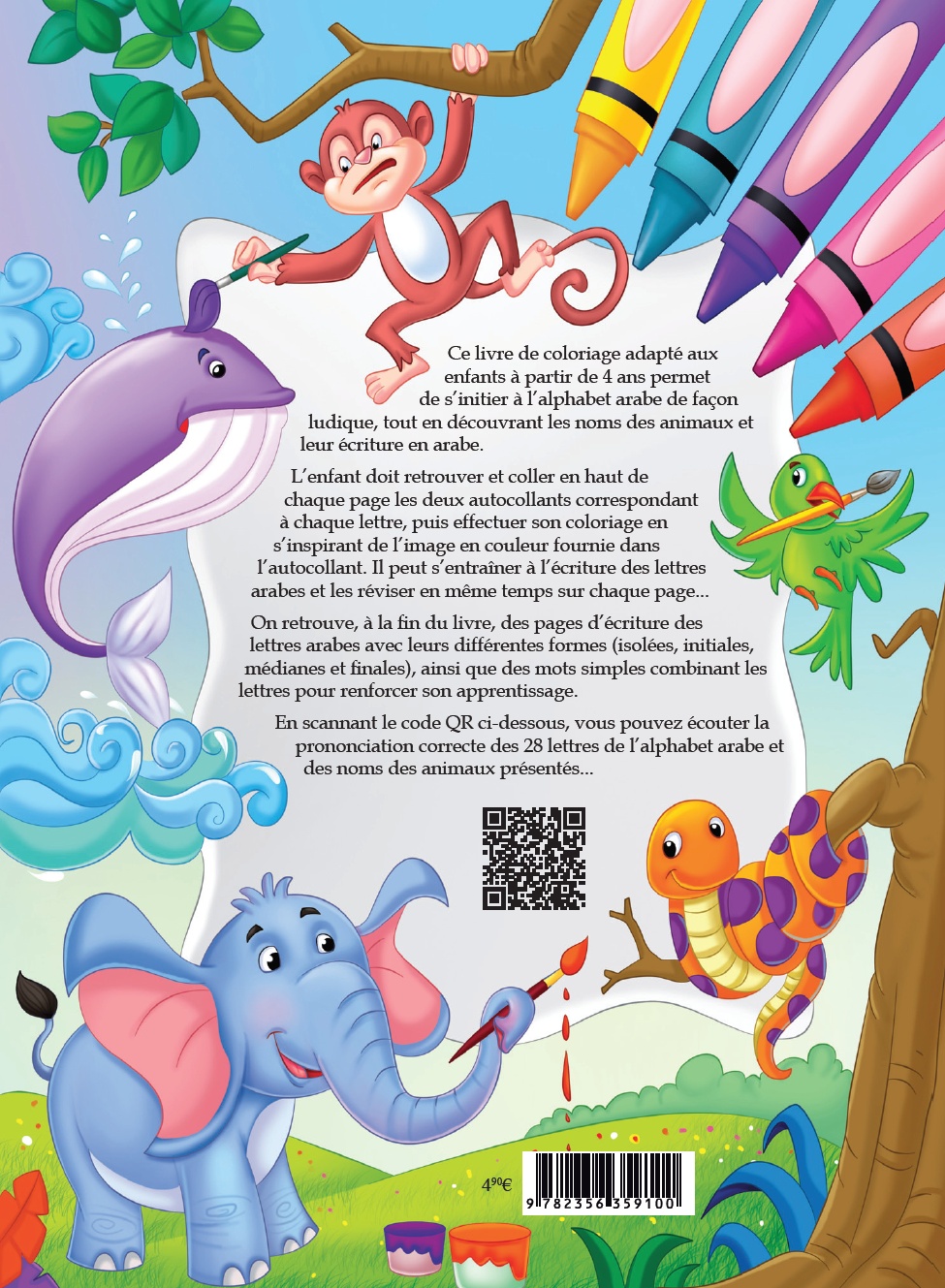 J’écris et je colorie mes lettres arabes avec les animaux (+ 56 stickers) - أَكْتُبُ وَأُلَوِّنُ حُرُوفِي الْعَرَبِيَّةَ مَعَ الْحَيَوَانَاتِ - REF. 39936 (4.90 €)