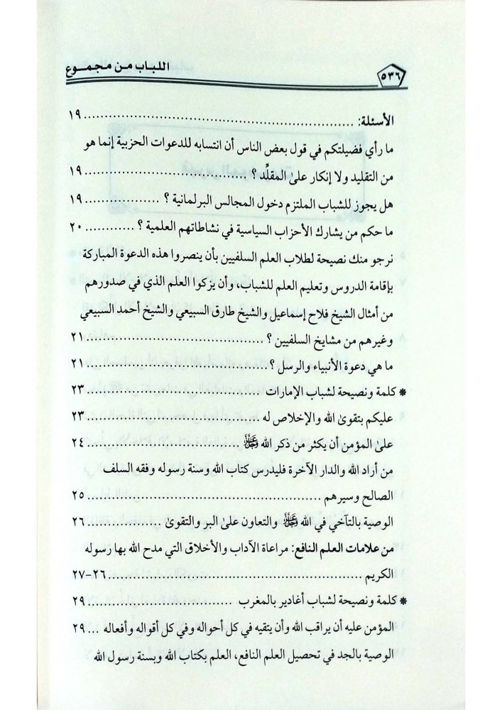 اللباب من مجموع نصائح وتوجيهات الشيخ ربيع للشباب: هذا الكتاب يجمع نصائح و توجيهات وجهها الشيخ للشباب في شتى بقاع الأرض: بريطانية و الكويت و ألمانية و الإمارات و المغرب و غيرها