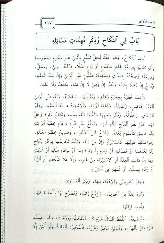 أقرب المسالك لمذهب الإمام مالك للإمام الدردير (1201 هـ) متن مشهور في الفقه على المذهب المالكي, من أنفس مختصرات المذهب، حيث ذكر فيه المعتمد في المذهب، ولخص فيه، وهذب الكتاب المشهور "مختصر خليل" العمدة في الفقه المالكي