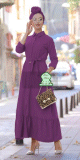 Robe Sarah marron foncé manches longues avec broderies et paillettes.