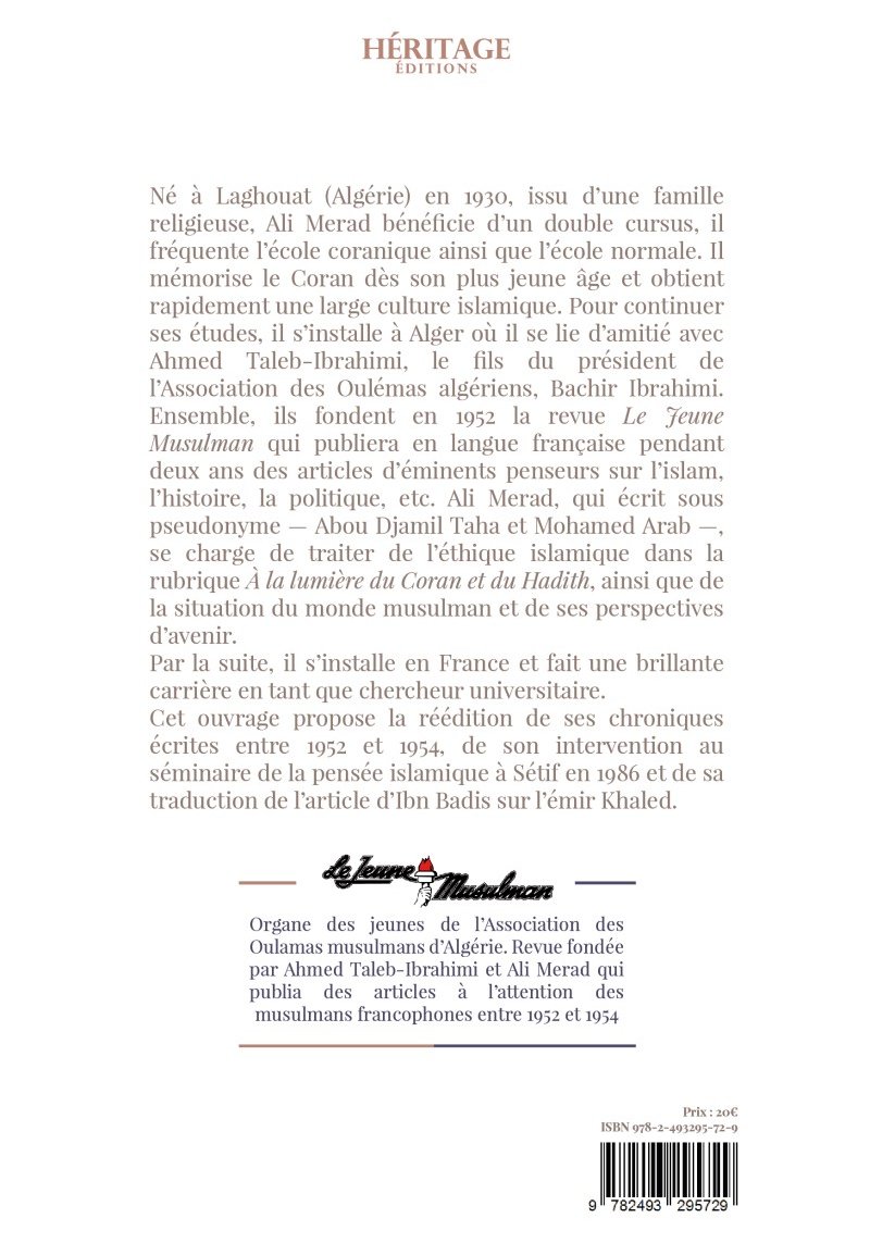 Né à Laghouat (Algérie) en 1930, issu d'une famille religieuse, Ali Merad bénéficie d'un double cursus, il fréquente l'école coranique ainsi que l'école normale. Il mémorise le Coran dès son plus jeune âge et obtient rapidement une large culture islamique. Pour continuer ses études, il s'installe à Alger où il se lie d'amitié avec Ahmed Taleb-Ibrahimi, le fils du président de l'Association des Oulémas algériens. Bachir Ibrahimi. Ensemble, ils fondent en 1952 la revue Le Jeune Musulman qui publiera en langue française pendant deux ans des articles d'éminents penseurs sur l'islam, l'histoire, la politique, etc.