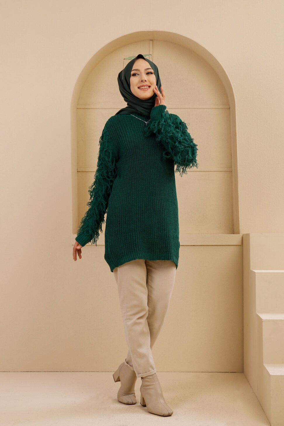 Chandail - Tricot long pour femme - Couleur vert émeraude Vetement & Accessoire