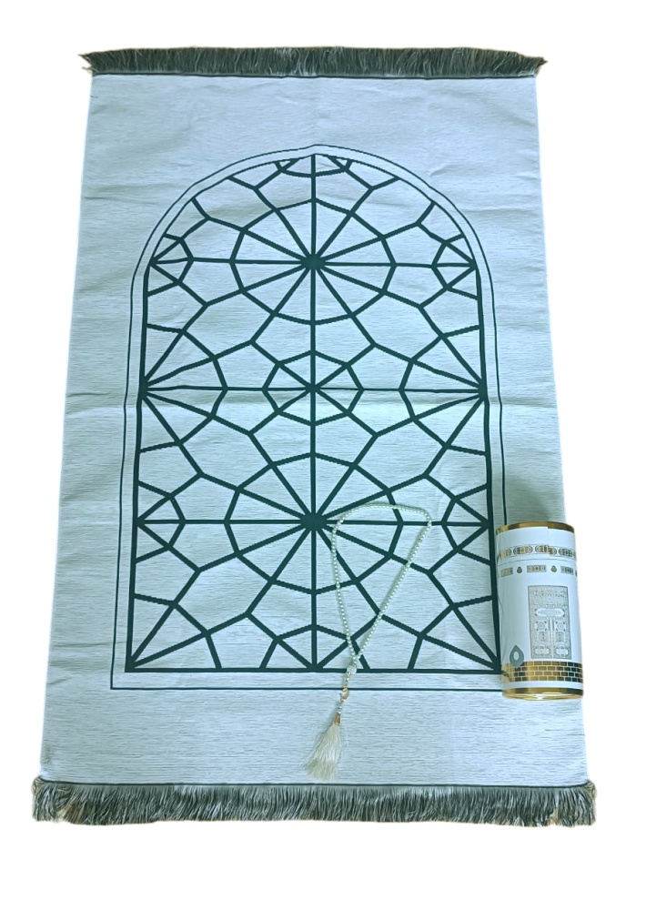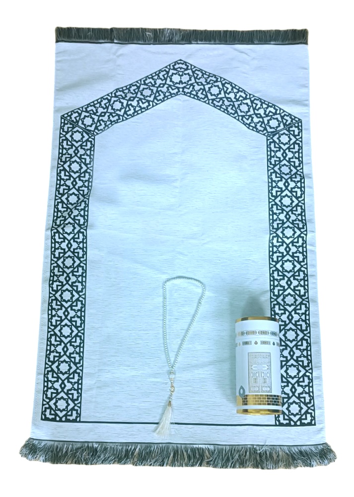 Faites plaisir à vos proches avec ce coffret que vous pouvez, si vous le désirez, assortir à un Coran de la même couleur (blanc doré)... Les motifs sur le tapis peuvent varier en fonction du stock.