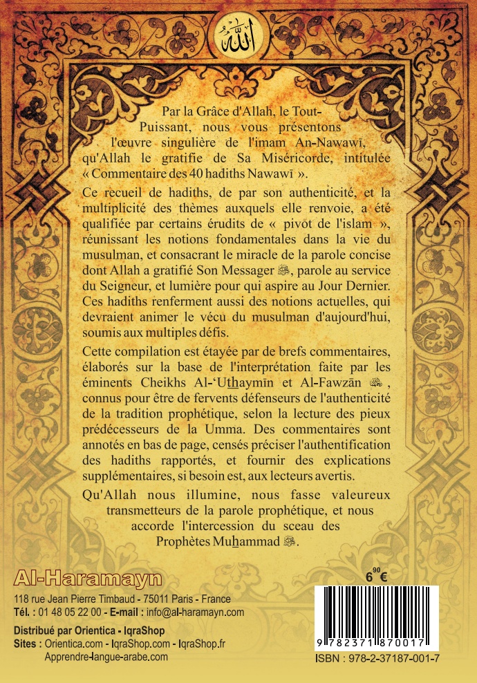 Al-wâfî, commentaire des 40 Hadîths de l’Imam an-Nawawî - REF. 269 (18.00 €) |