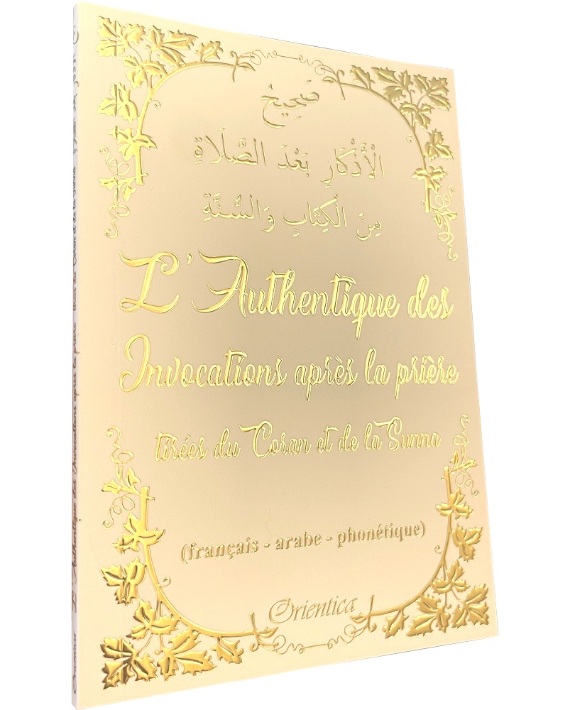 L'Authentique des Invocations après la prière tirées du Coran et de la Sunna (Sahîh Al-Adhkâr Ba‘da As-Salât mina-l-Kitâb wa-s-Sunna صَحِيحُ الْأَذْكَارِ بَعْدَ الصَّلَاةِ مِنَ الْكِتَابِ وَالسُّنَّةِ) en français - arabe - phonétique. Couverture blanche dorée.