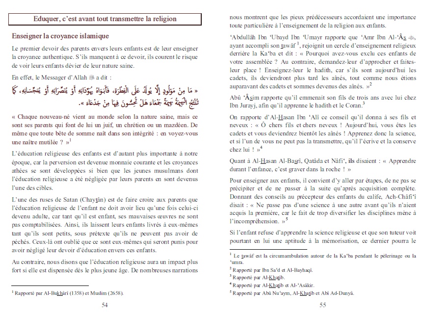 L'education des enfants en islam a la lumiere du Coran et de la Sunna