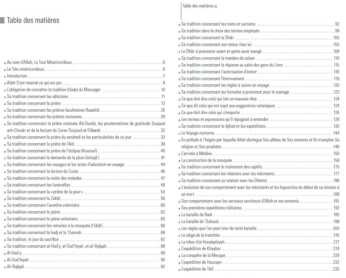 Cet ouvrage se distingue par la clarté de son approche, permettant au croyant de suivre les traces du Prophète (ﷺ), de raffermir sa foi, de se préserver de l'égarement et d'espérer le Pardon, par l'intercession du sceau des prophètes.