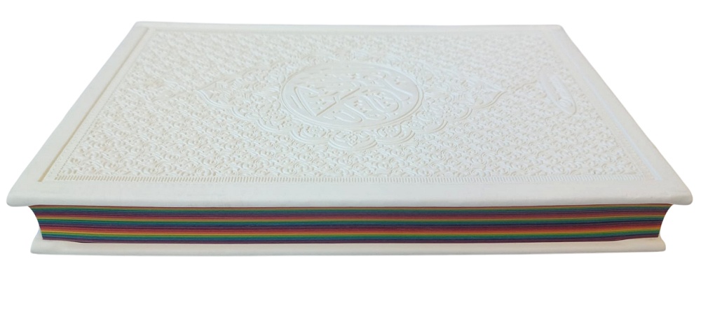 Le Coran Arc-en-ciel version arabe uniquement (Lecture Hafs) - Couverture de luxe en simili cuir blanche.