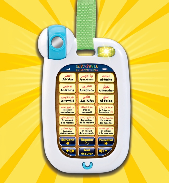 avec sa lumière et ses touches tactiles, ce portable islamique est pratique pour occuper l'enfant musulman (garçon ou fille) pour éviter qu'il ne joue et casse le smartphone ou la tablette des parents...
