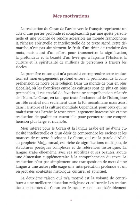 Cette traduction a été pensée pour être accessible à tous, sans complexité, tout en restant fidèle à la beauté et à la puissance du texte original. C’est un ouvrage indispensable pour ceux qui cherchent à enrichir leur spiritualité tout en respectant la pureté du message coranique.