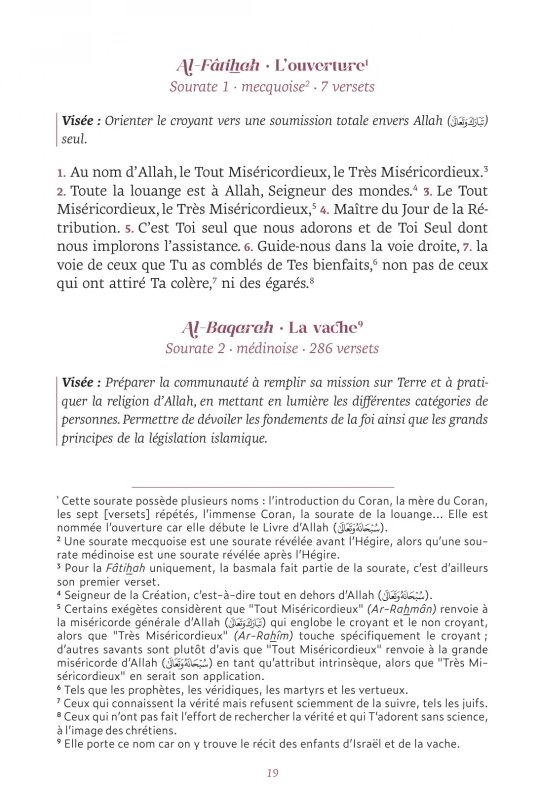 Chaque verset est soigneusement traduit et accompagné d’explications claires, afin de rendre le texte compréhensible sans sacrifier la profondeur spirituelle. Vous découvrirez non seulement le sens littéral des versets, mais aussi leur contexte historique et culturel, ce qui vous permettra de mieux saisir les enseignements divins. Des annotations précieuses vous guideront tout au long de votre lecture, facilitant l’accès à la sagesse contenue dans le Coran.
