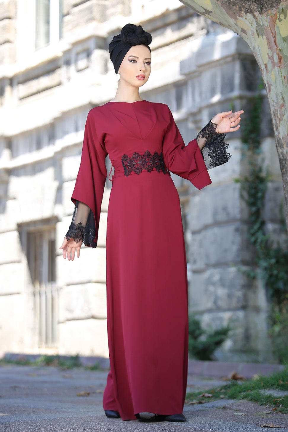 Robe chic coupe évasée à manches longues, féminine en dentelle avec col rond. Sa ceinture assortie à attacher par derrière. Avec les bons accessoires, Cette robe est parfaite pour les occasions décontractées comme festives.