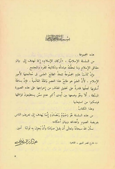 ويهذف هذا الكتاب إلى تعريف الناس بفريضة الصوم وأهذافه وبيان أحكامه. نسأل الله سبحانه وتعالى أن يقبل صيامنا وأن يجزل به ثوابنا. آمين.