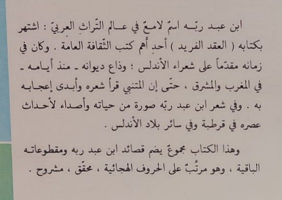 يتناول شعر ابن عبد ربه، وهو واحد من أشهر شعراء الأندلس عامة، وشعراء زمانه خاصة. ويبدو في الكتاب معرض واسع لظروف حياة الشاعر، ومجال لمواقفه وآرائه، ويعطي صورة اجتماعية وتاريخية لحياة الناس آنذاك ولأحوال بلاد الأندلس. ويعد هذا الكتاب وثيقة تاريخية ، وخصوصاً في عصر عبد الرحمن الناصر الذي نقل الحكم الأموي من الإمارة إلى الخلافة. ويمثل هذا الكتاب الإصدار الثالث من شعر ابن عبد ربه، محققاً ومشروحاً، ومصدراً بمقدمة عن الشاعر وشعره. وتأتي صنعة محقق الديوان فيه، لتكون الأوفى نصوصاً، والأعلى رواية وقراءة ، والأجلى شرحاً وبياناً. وينفرد هذا التحقيق بالصحة والدقة والأصالة في جميع نصوصه وتصحيحها، والتقديم لها، وشرح معانيها، وتعريفات واسعة ، واستيفاء شامل، واستقصاء واسع للمصادر والمراجع ويقدم فرصة مثلثة العلاقة بين الكاتب المحقق، والطابع الناشر ، والملتقى القارئ، في مساحة وود، ووقفة جد، وطاقة ورد، في رؤية خاصة في قراءة النص، مع التأدب التام مع العلماء والأساتذة السابقين. ويضم الكتاب مع ديوان ابن عبد ربه، أرجوزته في مغازي عبد الرحمن الناصر لدين الله التاريخية، وأرجوزته في العروض، مع كشف هام بالروايات والتخريجات الموثقة للديوان.