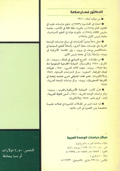 هذا الكتاب عن المجتمع والدولة في المشرق العربي، للدكتور غسان سلامة، هو واحد من خمسة مجلدات حول المجتمع والدولة في الوطن العربي؛ تصدر عن مركز دراسات الوحدة العربية، ضمن مشروع الوطن العربي".
