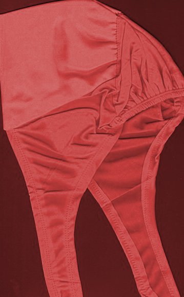 Avec élastique à l’arrière et deux parties de tissu à nouer. 100% polyester. De Couleur rouge.