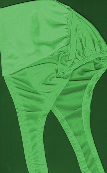 Avec élastique à l’arrière et deux parties de tissu à nouer. 100% polyester. De couleur verte foncé.