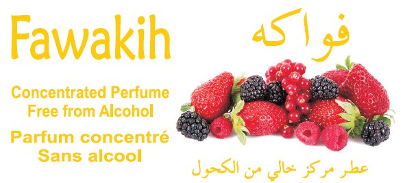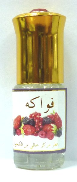 Parfum concentré sans alcool Musc d'Or "Fawakih" (3 ml) - Parfum mixte (femmes et hommes). Le mot arabe fawâkih (فواكه) signifie fruits.