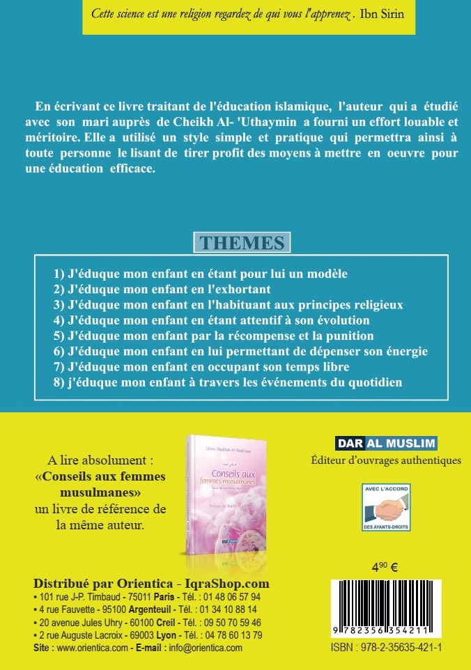 "Les responsabilités des éducateurs sont nombreuses pour ce qui est de leur rôle tant dans l'éducation spirituelle, qu'éthique, intellectuelle, physique, psychologique ou sociale. .Il serait inutile de décrire la joie des parents lorsqu'ils récolteront le fruit de la bonne éducation qu'ils ont prodiguée à leurs enfants. Cependant comment inculquer cette éducation ? Quels sont les moyens qui nous aideront à parfaire leur personnalité ? C'est pour répondre à ces questions que j'ai écrit ce modeste ouvrage,par la volonté d'ALLAH, qui traite de la façon de mettre en oeuvre une éducation efficiente et efficace vis à vis des individus en général et des enfants en particulier afin que les éducateurs puissent suivre cette méthodologie pratique.Je suis d'avis que l'on peut classer ces moyens en huit catégories différentes que j'ai pu déduire des ouvrages traitant de cette thématique:
