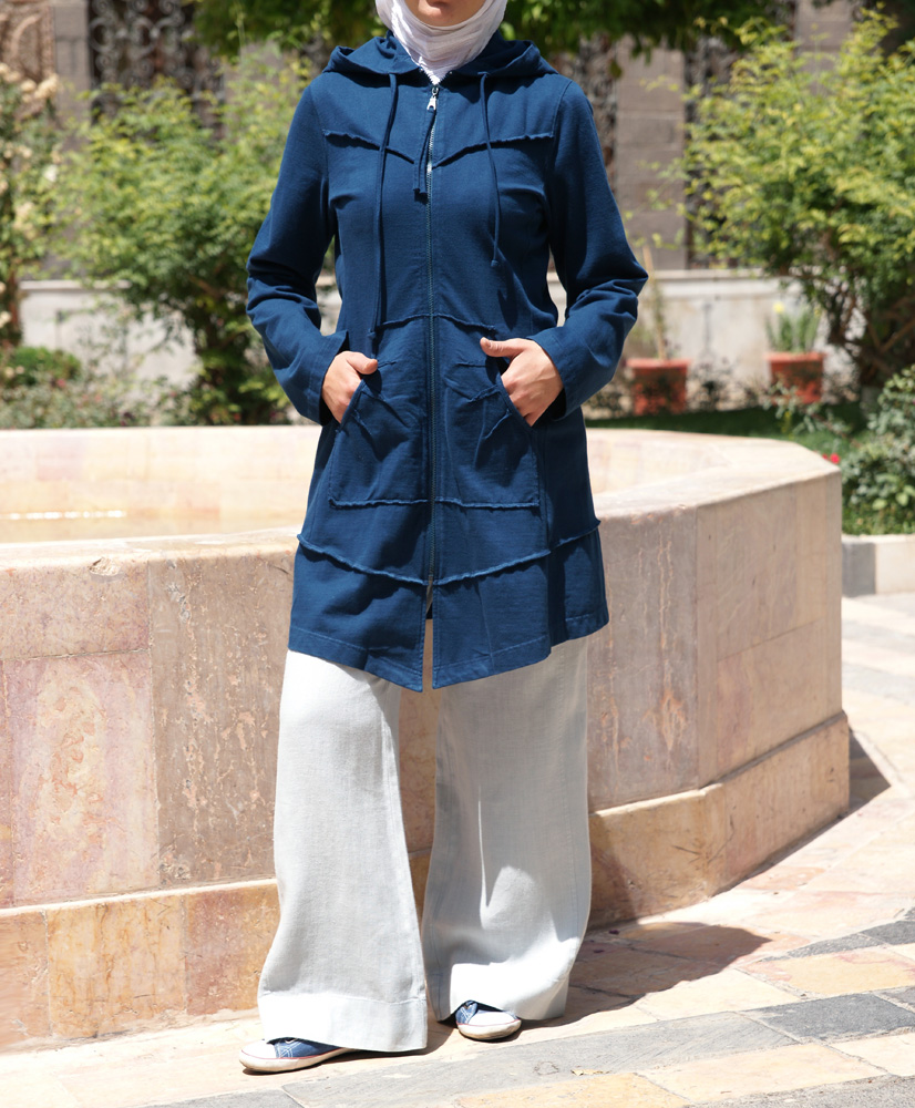 Tunique décontractée avec grande poche (Sweat femme Hijab) - Couleur bleu nuit - REF. 35269 (22.00 €) - En Promotion à 17.50 €