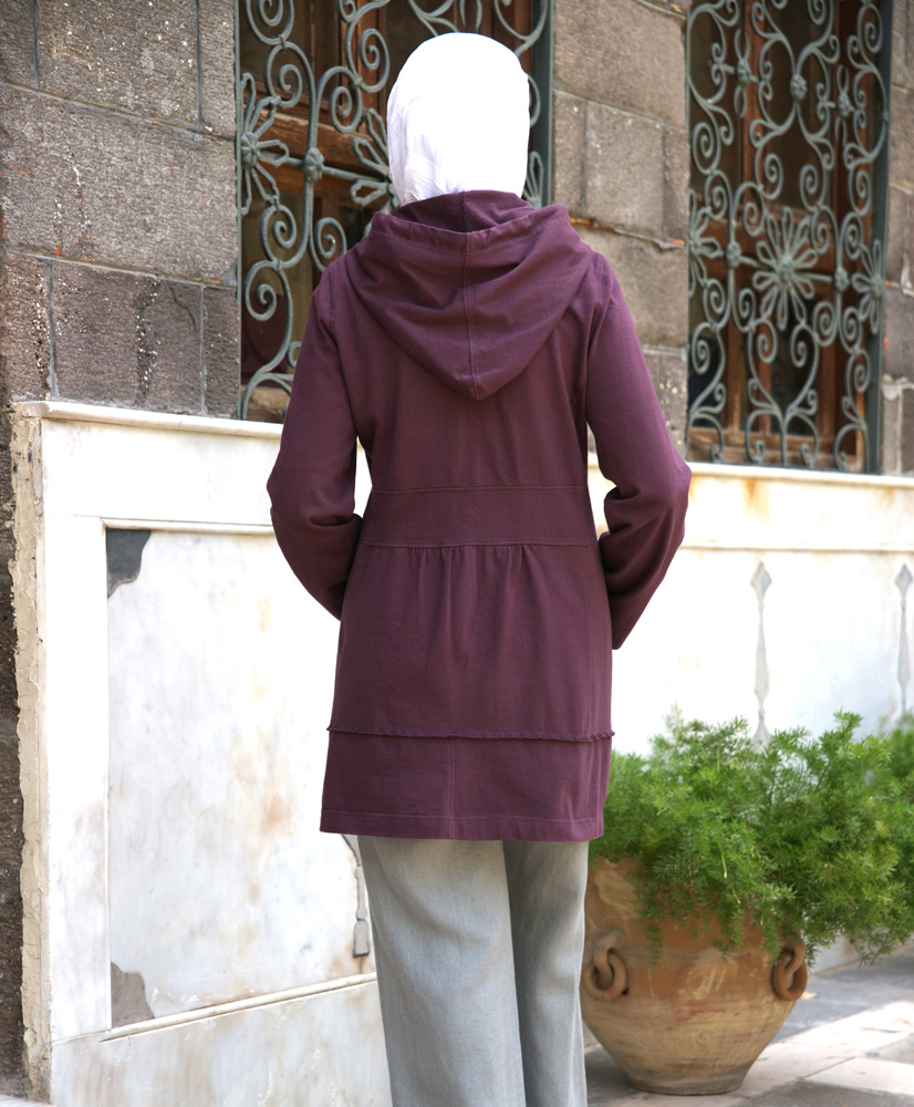 Tunique avec capuche pour femme (Vêtement décontracté mastour pour hijab) - Couleur vieux rose - REF. 35773 (23.00 €)