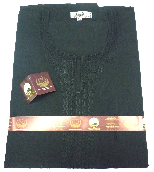 Qamis Al-Haramayn sans col brode - Couleur noire