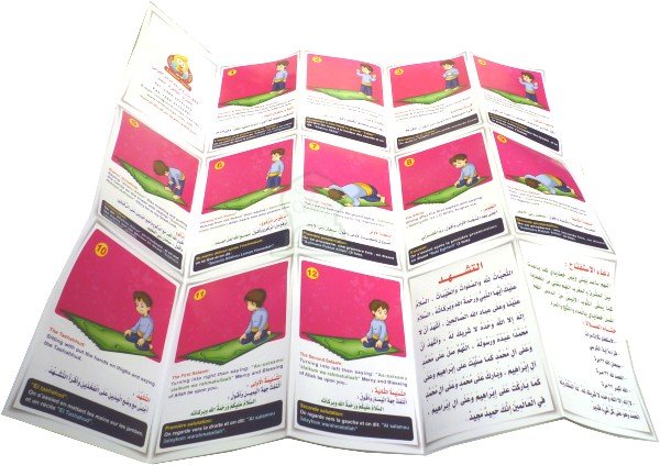Livre Poster Depliant "Apprendre la priere avec photo" - Garcons - Filles (arabe / francais / anglais)