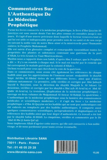 Parmi les livres consacrés à la médecine prophétique, le livre d'Ibn Qayyim Al Jawziyya est sans aucun doute l'un des plus connus et consultés jusqu'à nos jours. Il s'agit d'une œuvre précieuse dans laquelle le lecteur trouvera tout ce qui lui est utile et indispensable pour prendre soin de sa santé et de son corps en suivant la noble voie de notre bien-aimé et la miséricorde pour l'humanité entière, le Prophète Muhammad.