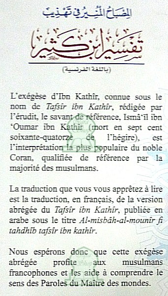 L'Exégèse du Coran, Tafsîr Ibn Kathir (4 volumes) - تفسير ابن كثير 1/4 (فرنسي) لونان - REF. 4252 (75.00 €)