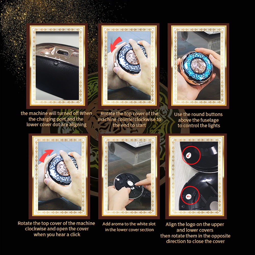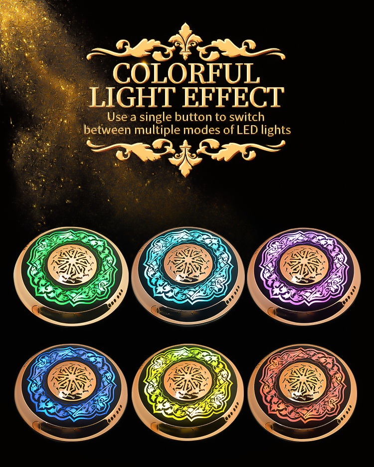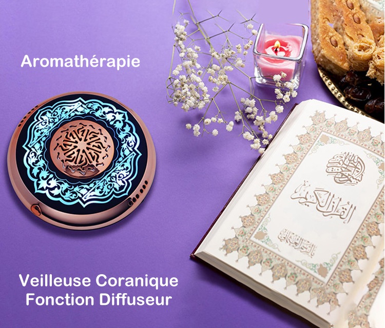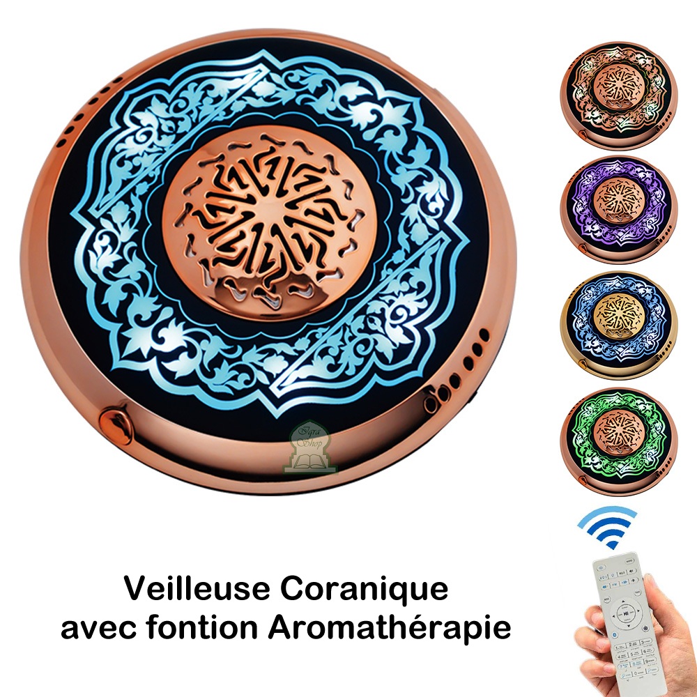 Lampe Veilleuse Coranique "Aromathérapie" : On peut ajouter des huiles essentielles ou parfumées... Utilisable avec télécommande ou avec un smartphone grace à son application.
