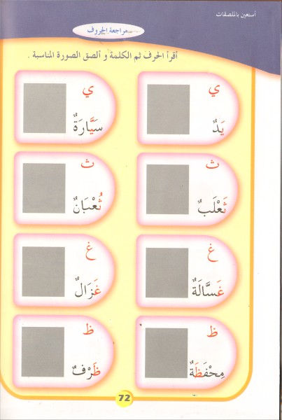En guise de révision, une planche d'étiquettes autocollantes avec des images et des mots, permet à la fin du livre de faire des exercices sur la grille qui la précède.