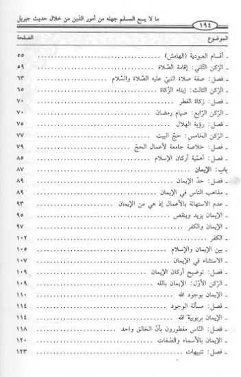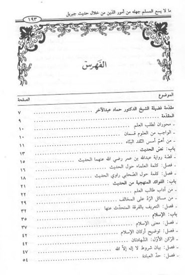 هذا المبحث هذ شرح حديث جبريل عليه السلام وسماه "ما لا يسع المسسلم جهله من أمور الدين من خلال حديث جبريل عليه السلام" قام من خلاله بتوضيح ما يجب توضيحه من المعاني. وذلك بجمع كلام الأئمة والعلماء وترتيبها في نسق واحد حتى يستوعبها القارئ، ولا سيما المبتدئ.