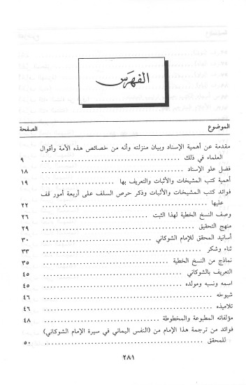 الشوكاني رحمه الله هو من أحد الأئمة الأعلام ، وقد ذكر في مؤلفه هذا ، الكتب التي تلقاها عن مشايخه بالسماع مسندة إلى مؤلفيها ، كأمهات الكتب : البخاري ومسلم وغيرها ، مما يعني هذا العلم أن الشوكاني كأنه تلقى البخاري من مؤلفه نفسه ، وقد قدم المحقق مقدمة مهمة عن علم الإسناد وأهميته في الدين ، ولولا الإسناد لقال من شاء ما شاء .