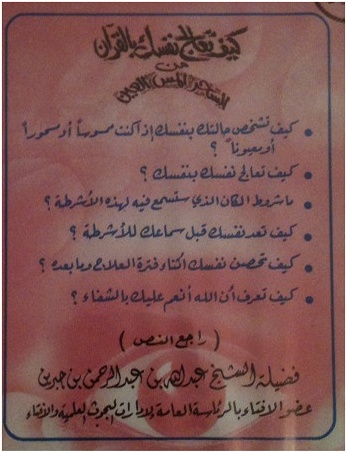Coffret 4 cassettes : une cassette d'explications et les 3 autres cassettes contiennent (1) la roqya contre la sorcellerie, (2) la roqya contre la possession, (3) la roqya contre le mauvais œil.