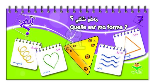 Imagier bilingue arabe - français à spirales découpé en cartes. Trouve la forme d'un oeuf. Découvre ainsi 10 formes.